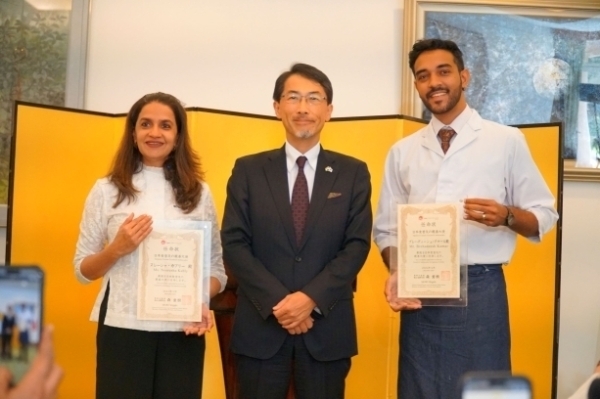 ヌレーシャ・カブリー氏及びブレハディーシュ・クマール氏に対する「日本食普及の親善大使」任命状授与式