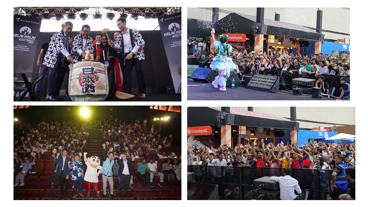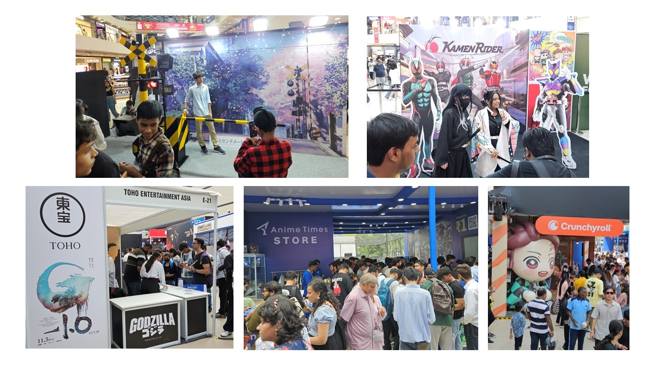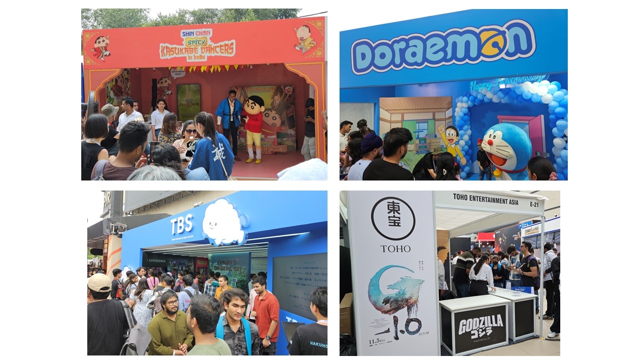 当イベントでは、インドを舞台にしたクレヨンしんちゃんの新作がインドで初上映されたほか、多くのアニメ作品の上映、アニメキャラクターグッズの販売に加え、食品・飲料・文房具・自動車などのメーカー日本企業による製品やサービスの紹介、留学、観光などのブースが所狭しと並び、グッズの購入や記念撮影、PRに耳を傾けるインドの若者たちによりどのブースも活気にあふれていました。また、日本から著名なアニソン歌手が来場しインド人にもなじみのある歌を披露すると、会場は大変な盛り上がりを見せました。