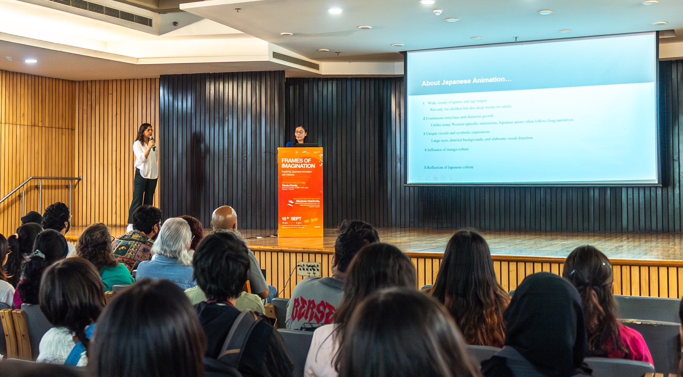 在インド日本国大使館は、2025年9月15日(月曜日)にデリー市内のIndia International Centerにて、その前日14日(日曜日)にインドで初上映された『映画クレヨンしんちゃん 超華麗!灼熱のカスカベダンサーズ』(インドでのタイトル「Shin chan: The Spicy Kasukabe Dancers in India」)を手がけた橋本昌和監督を招き、アニメ業界に関心のある若者を対象にワークショップを開催しました。インドでは日本のアニメに興味を持つ若者が大変多く、近年では日本のアニメ産業に興味を示す若者やアニメーターを志す若者が増加しています。