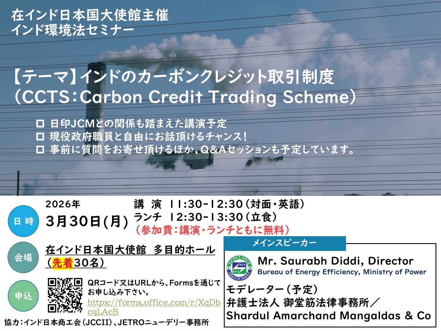 形式:対面形式(場所:在インド日本国大使館・多目的会議室)(先着30名)