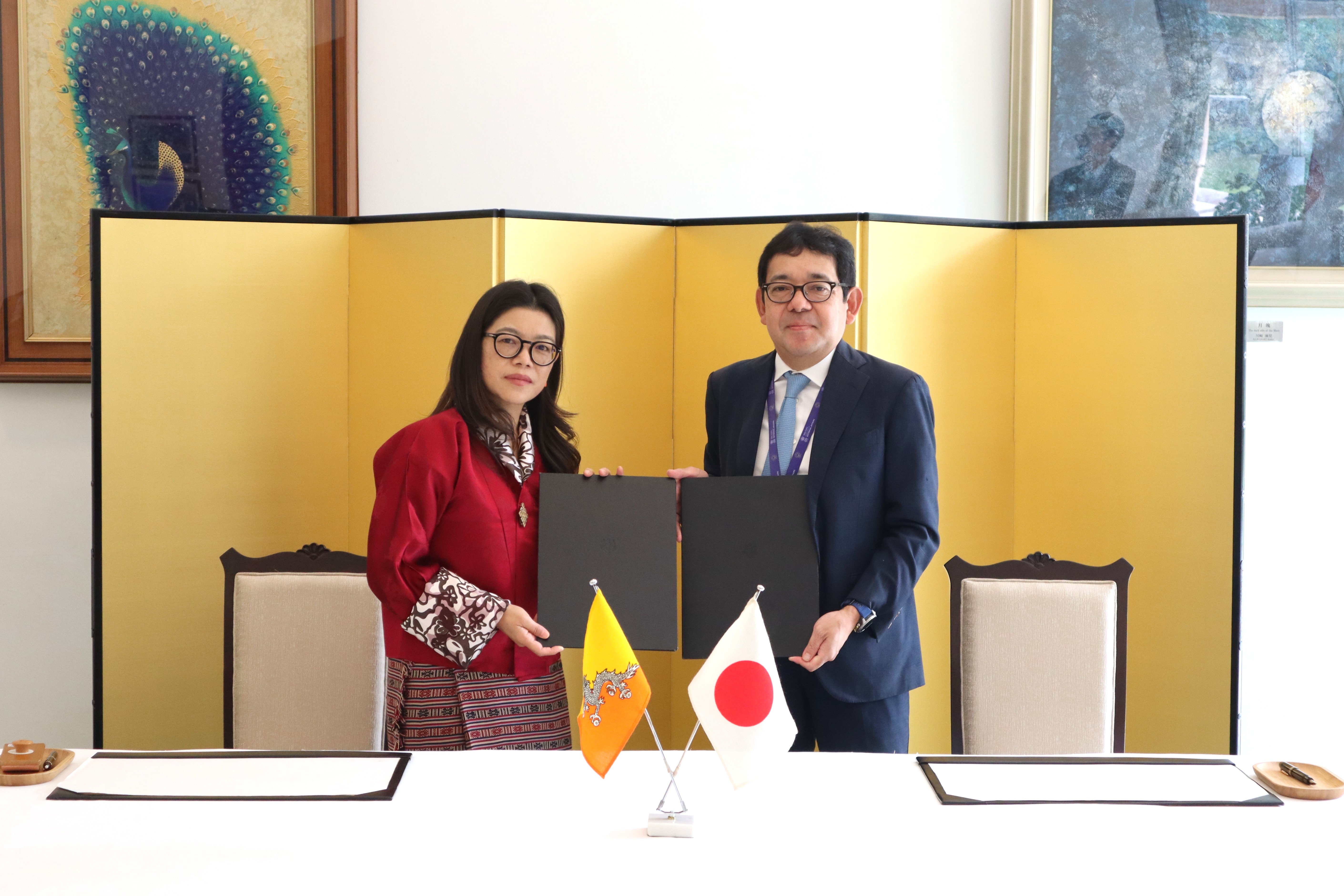 令和8年3月17日、令和7年度対ブータン草の根・人間の安全保障無償資金協力「ティンプー市バキュームカー整備計画」の贈与契約(G/C)について、有吉孝史駐ブータン王国日本国臨時代理大使とタシ・ペルドン駐日本国ブータン王国臨時代理大使が署名を行いました。