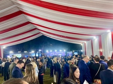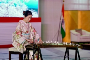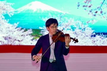 After the remarks, guests enjoyed a violin and koto collaboration performance by Mr. Asonuma and Ms. Shimizu as well as videos showcasing Japan–India exchanges over the past year, tourism videos produced by the Japan National Tourism Organization (JNTO), and promotional videos by Japanese local governments. Guests relished Japanese food and sake while discussing the friendship between Japan and India.
